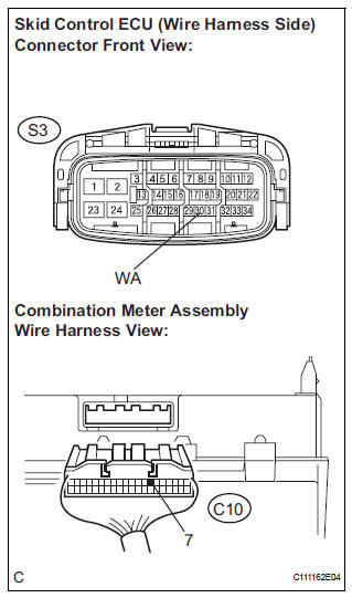 2 CHECK HARNESS AND CONNECTOR (BETWEEN SKID CONTROL ECU AND COMBINATION METER ASSEMBLY)