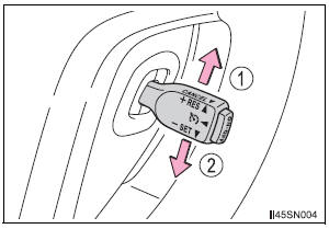 The set speed will be increased or decreased as follows: Fine adjustment: By approximately 1 mph (1.6 km/h) each time the lever is operated.