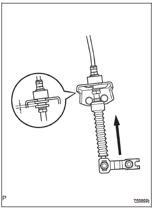 (d) While pushing the control cable end up with the shift lever in the N position, install it to the control shaft lever with the nut.