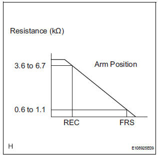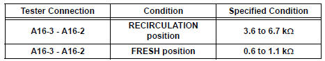 (e) As the air inlet control servo motor moves from RECIRCULATION to FRESH, the resistance decreases gradually without interruption.