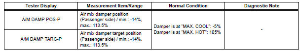 This adjusts the mix ratio of the air that passes through the evaporator and heater core and controls the air flow temperature. Air flow temperature changes when the air mix damper is moved to the target point.