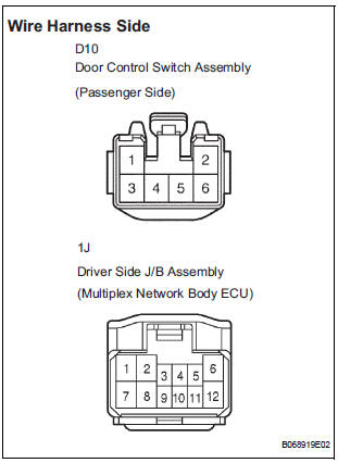 7 CHECK HARNESS AND CONNECTOR (DOOR CONTROL SWITCH (PASSENGER SIDE) -DRIVER SIDE J/B)