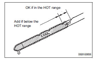 (e) Take out the dipstick again and check that the fluid level is within the HOT range.