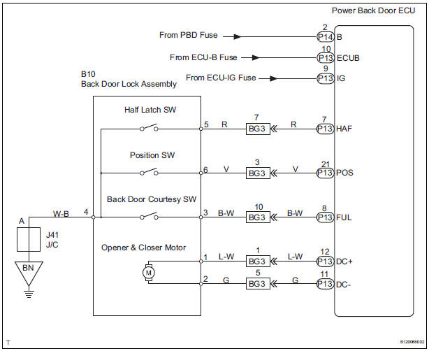 The power back door ECU controls the back door closer system. In response to the signals output from the switches related to the back door lock, the back door latch activates the closer motor.