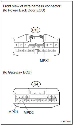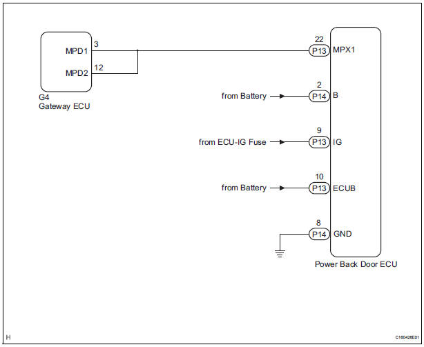 DTC B1287 is output when communication between the power back door ECU and the multiplex network gateway ECU stops for more than 10 seconds.