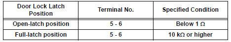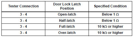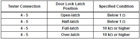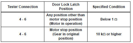 HINT: If the result is not as specified, replace the door lock assembly.