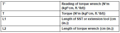 (1) Use the formula below to calculate special torque values for situations where SST or an extension tool is combined with the torque wrench.