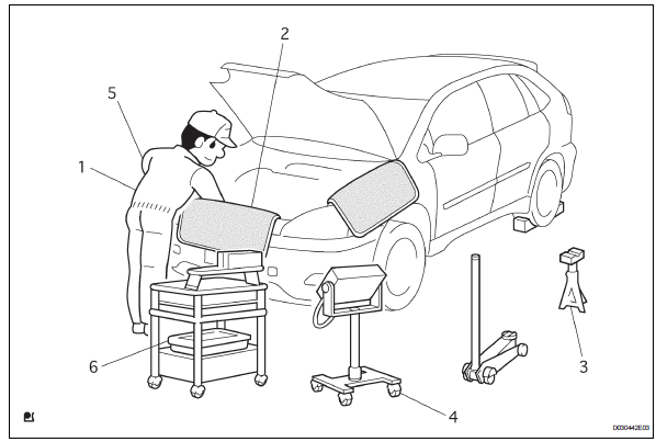 | 2 | Vehicle protection | Prepare a grille cover, fender cover, seat cover and floor mat before starting the operation. |