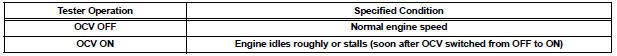After the ECM sends the "target" duty-cycle signal to the OCV, the ECM monitors the OCV current to establish an "actual" duty-cycle. The ECM detects a malfunction and sets a DTC when the actual dutycycle ratio varies from the target duty-cycle ratio.