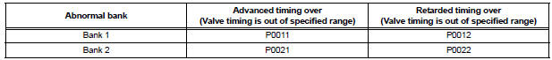 HINT: If DTC P0011, P0012, P0021 or P0022 is present, check the VVT (Variable Valve Timing) system.