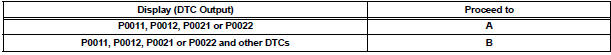 HINT: If any DTCs other than P0011, P0012, P0021 or P0022 are output, troubleshoot those DTCs first.