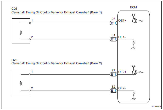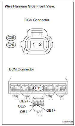 (a) Disconnect the C25 or C26 camshaft timing oil control valve (OCV) connector.