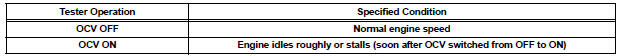 (e) Check the engine speed while operating the Oil Control Valve (OCV) using the tester.