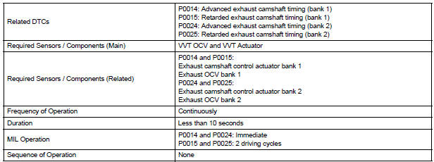 HINT: If DTC P0014, P0015, P0024 or P0025 is present, check the VVT (Variable Valve Timing) system.