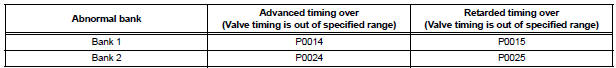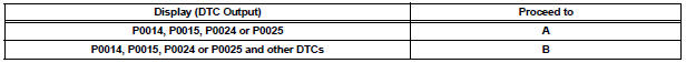 HINT: If any DTCs other than P0014, P0015, P0024 or P0025 are output, troubleshoot those DTCs first.