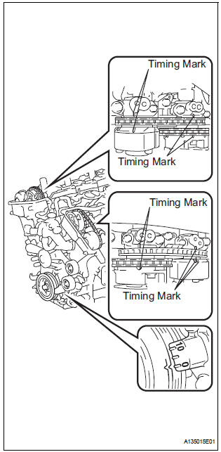 OK: The matchmarks of the camshaft pulley and the camshaft bearing cap align when the notch of the crankshaft pulley is in the "0" position.