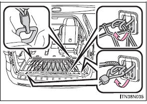 | NOTICE To prevent damage to the cargo net hooks, avoid hanging things other than a cargo net on them. |