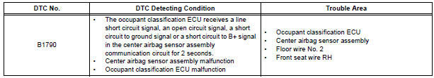 DTC B1790 is recorded when a malfunction is detected in the center airbag sensor