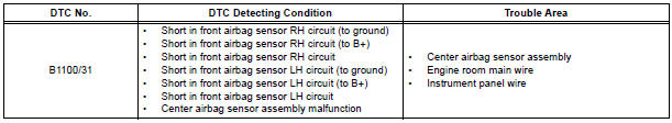 DTC B1100/31 is recorded when a malfunction is detected in the center airbag
