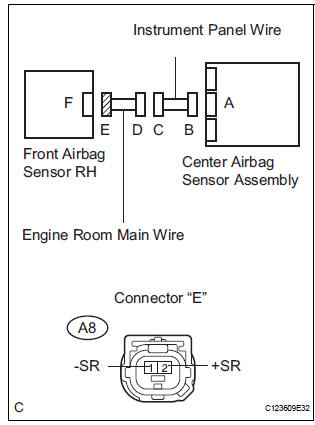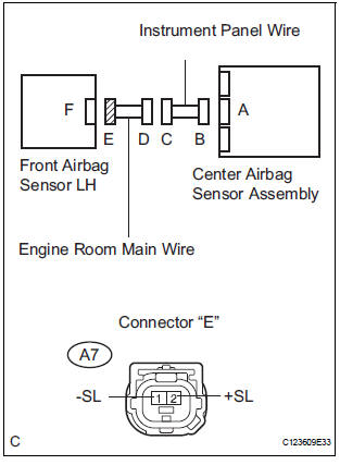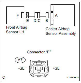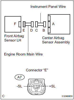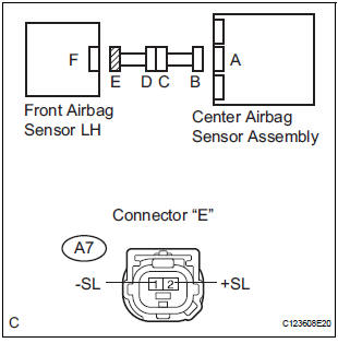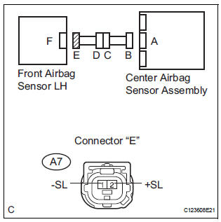 The front pretensioner squib LH circuit consists of the center airbag sensor