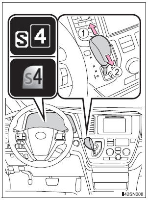 The initial shift range in S mode is set automatically to 5 or 4 according to vehicle speed. However, the initial shift range may be set to 3 if the AI-SHIFT has operated while the shift lever was in the D position.