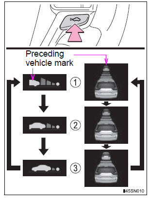 Pressing the button changes the vehicle-to-vehicle distance as follows: