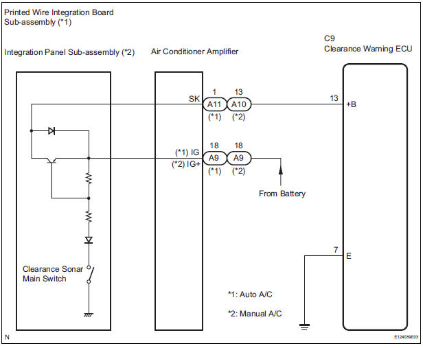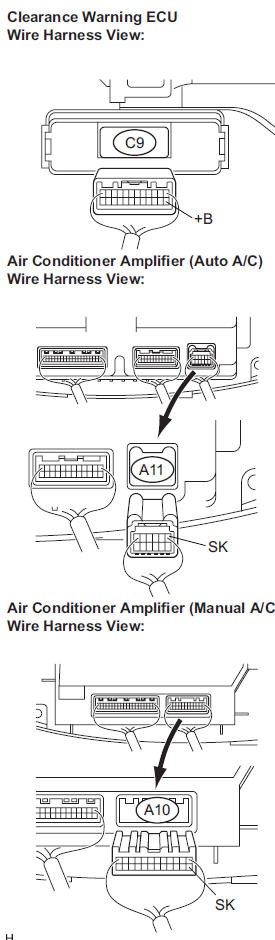 1 CHECK HARNESS AND CONNECTOR (CLEARANCE WARNING ECU - AIR CONDITIONER AMPLIFIER)