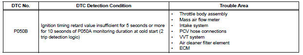 The DTC is designed to monitor the idle air control at cold start. When the engine is started at lower than 50°C (122°F) of the engine coolant temperature, the ECM measures the accumulated mass air flow at the engine idling. If it does not reach the criteria within 10 seconds, the ECM interprets this as a malfunction.