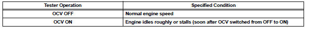 (e) Check the engine speed while operating the Oil Control Valve (OCV) using the tester.