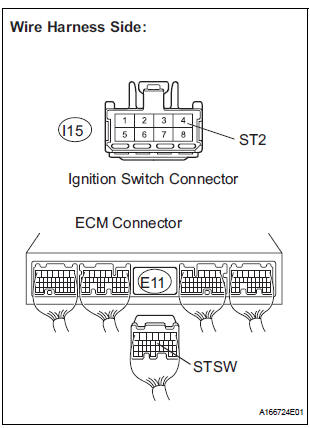 15 CHECK HARNESS AND CONNECTOR (ECM - IGNITION SWITCH ASSEMBLY)