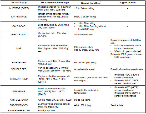 NOTICE: In the table below, the values listed under Normal Condition are for reference only. Do not depend solely on these values when determining whether or not a part is faulty.