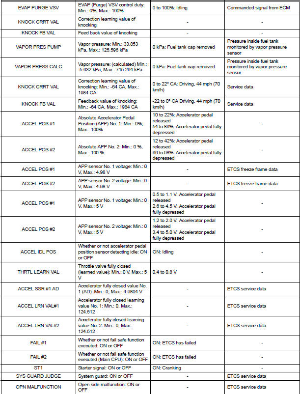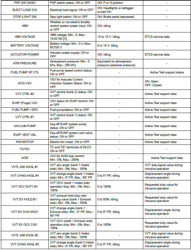 HINT: Reading the DATA LIST displayed on an intelligent tester enables values, including those of the switches, sensors, and actuators, to be checked without removing any parts. Reading the DATA LIST as the first step in troubleshooting is one method to shorten diagnostic time.