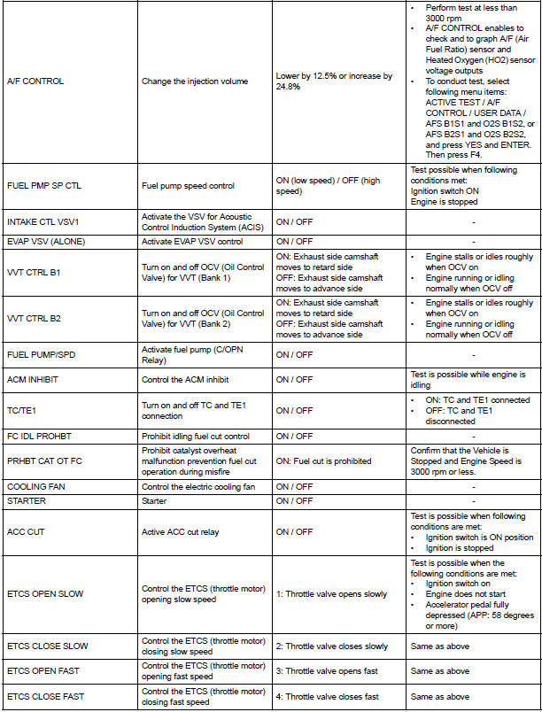 HINT: Performing an ACTIVE TEST enables components including the relays, VSV (Vacuum Switching Valve), and actuators, to be operated without removing any parts.