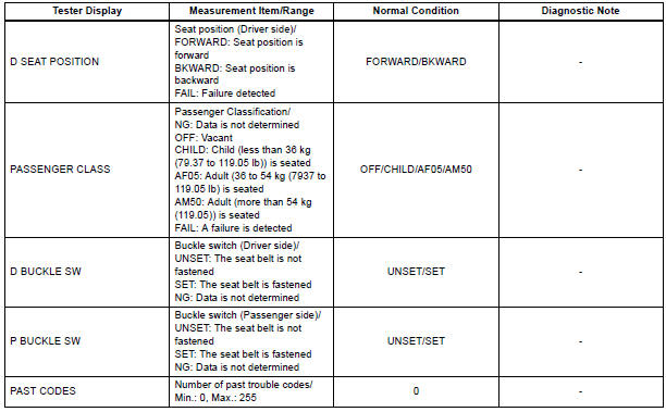 1. DATA LIST FOR CENTER AIRBAG SENSOR ASSEMBLY