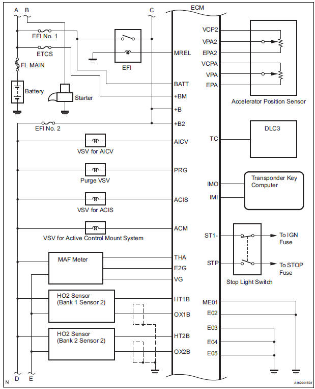 | Required Sensors / Components | Sensors and components used by ECM to detect each malfunction |