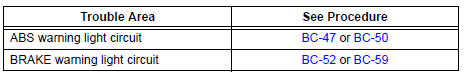 When ignition switch is turned ON, check that the ABS warning light and brake warning light come on for 3 seconds.