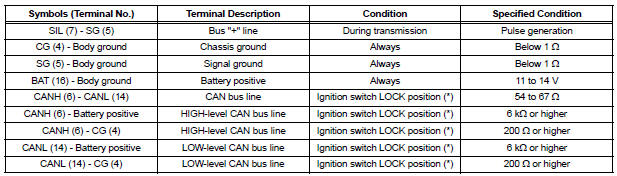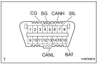 NOTICE: *: Before measuring the resistance, leave the vehicle as is for at least 1 minute and do not operate the ignition switch, any other switches, or the doors. If the result is not as specified, the DLC3 may have a malfunction. Repair or replace the harness and connector.