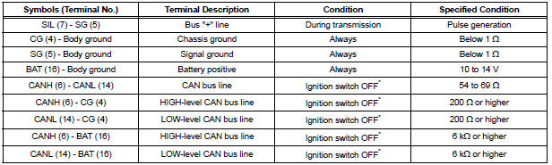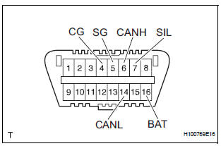 NOTICE: *: Before measuring the resistance, leave the vehicle as is for at least 1 minute and do not operate the ignition switch, any other switches or the doors. If the result is not as specified, the DLC3 may have a malfunction. Repair or replace the harness and connector.