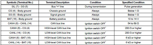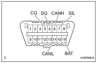 NOTICE: *: Before measuring the resistance, leave the vehicle as is for at least 1 minute and do not operate the ignition switch, any other switches or the doors. If the result is not as specified, the DLC3 may have a malfunction. Repair or replace the harness and connector.