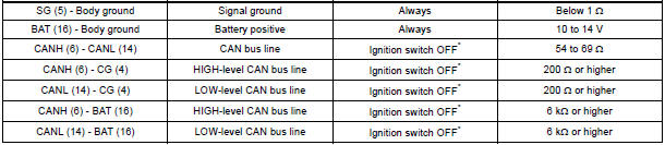 NOTICE: *: Before measuring the resistance, leave the vehicle as is for at least 1 minute and do not operate the ignition switch, any other switches or the doors.