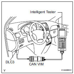 (Also the communication between the intelligent tester and the ECM uses CAN communication signal.) When confirming the DTCs and any data of the ECM, connect the CAN VIM between the DLC3 and the intelligent tester.
