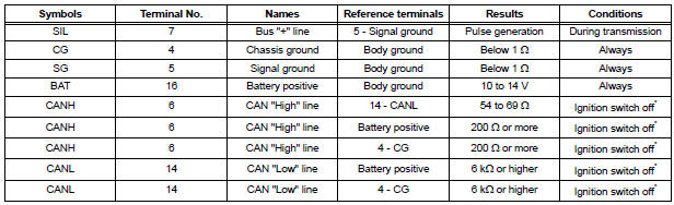 | NOTICE: *: Before measuring the resistance, leave the vehicle as is for at least 1 minute and do not operate the ignition switch, any other switches or the doors. |