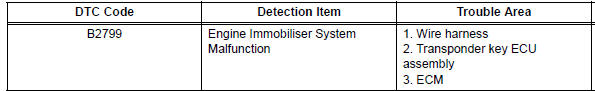 NOTICE: The DTC for the immobiliser system is specified above. If other codes are output, check the DTC chart for the SFI system.