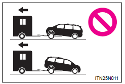 2WD models: Never tow this vehicle from the rear with the front wheels on the ground. This may cause serious damage to the transaxle.