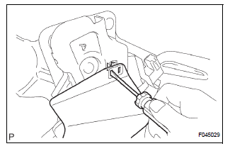 (a) Using a flat-head screwdriver, disengage the 2 claws on the parking brake pedal bracket protector.