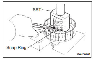 (a) Place SST on the clutch balancer and compress the spring with a press.
