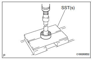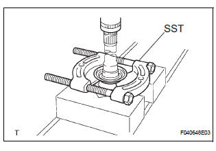 (a) Using SST and a press, remove the front drive shaft bearing.