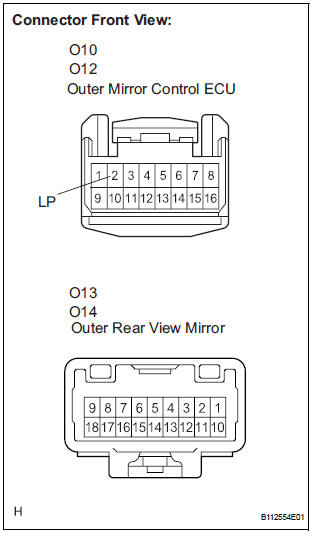 2 CHECK HARNESS AND CONNECTOR (OUTER MIRROR CONTROL ECU - OUTER REAR VIEW MIRROR)