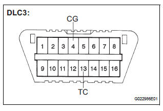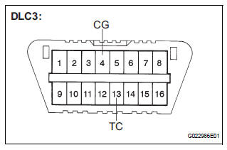 (6) After completing the check, disconnect terminals TC and CG of the DLC3, and turn off the display.