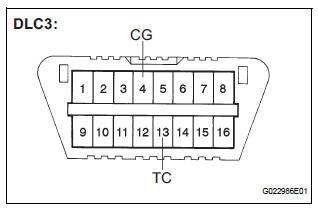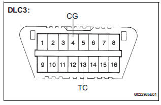 (1) Using SST, connect terminals TC and CG of the DLC3.